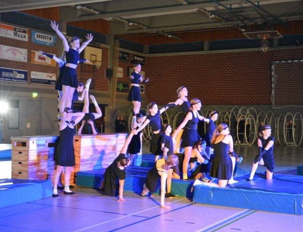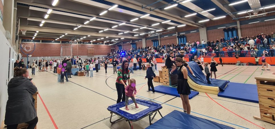 Am 3. Advent fand unser alljährliches Weihnachtsturnen unter dem Motto “Zeitreise“ statt. Und was sollen wir sagen? Wir sind begeistert! Vor einer ausgefüllten Tribüne in der Stadtsporthalle in Meppen konnten unsere Aktiven ihre extra einstudierten Shows zeigen und es war ein voller Erfolg. Als besonderes Highlight gab es dieses Jahr einen gemeinsamen Introtanz, mit dem alle 130 Turnerinnen und Turner das Publikum auf einen zauberhaften Nachmittag einstimmten. Außerdem erhielten unsere Übungsleiterinnen eine kleine Aufmerksamkeit als Dankeschön für ihr Engagement. Ein Dankeschön der anderen Art erhielt Christina Wulf-Moorkamp. Ihr wurde feierlich die Urkunde zur Vereinsheldin überreicht, was sie sichtlich rührte. Überraschung geglückt!