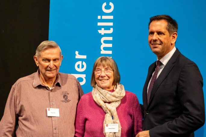 Unter den Geehrten waren auch Edeltraud und Klaus Bohn. Die beiden sind seit Jahrzehnten im Sport aktiv – und das im Doppelpack! Edeltraud begann bereits mit 14 Jahren, Klaus stieg mit 24 ein – dank ihrer Heirat. Heute sind beide stolze 82 Jahre alt und immer noch dabei!
