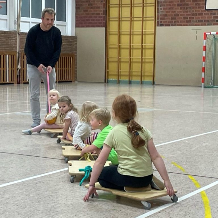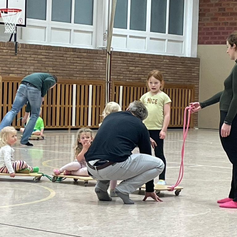 Dank St. Martin hatten wir nur 16 Eltern + Kinder in der Halle – und das haben wir genutzt! Rollbretter, Bälle und Reifen sorgten für Action und jede Menge Lachen. Es war einfach großartig!