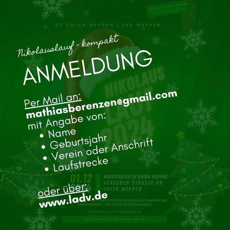 Am 14. Dezember 2025 lädt der LAV Meppen herzlich zum diesjährigen Weihnachtsturnen in die Stadtsporthalle Meppen ein.